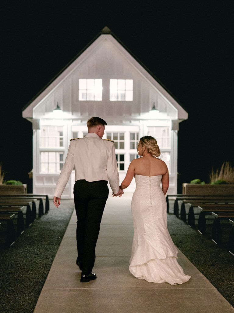 Alex and Kaitlyn chose to share a private first look inside the venue’s intimate indoor chapel. The moment he saw her, Alex’s emotion took over. He teared up immediately. Kaitlyn smiled back at him, and I could feel how grounded they were in that moment together. After the first look they exchanged gifts. Kaitlyn received a beautiful necklace that Alex help her put on. Alex received a new custom engraved Bible.