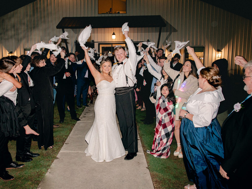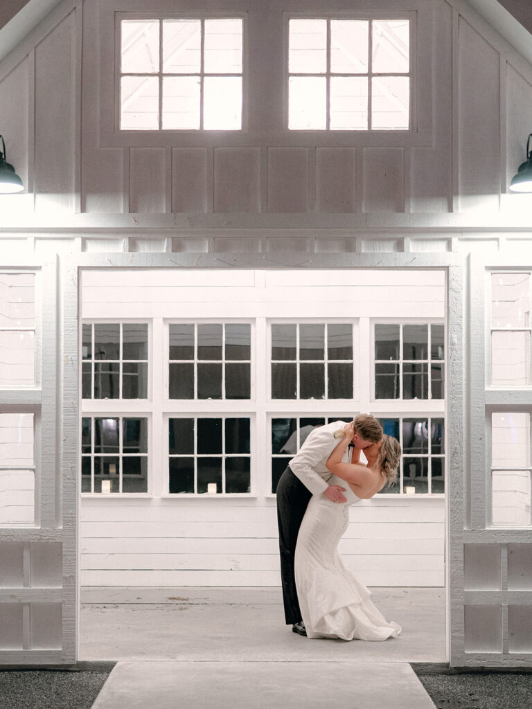 Alex and Kaitlyn’s wedding at Davis & Grey Farms blended bold modern style with playful personal touches—from vibrant florals and a glittering gown to beer burros and a custom photo wall. Their black-clad wedding party, checkered dance floor, and nods to their pup Remy made this celebration unforgettable.