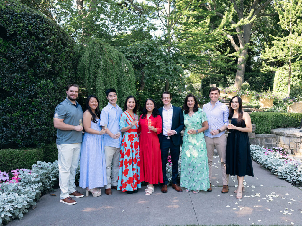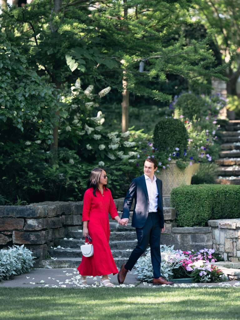 After the cheers and toasts, I took Isabel and Jake around the Arboretum for a few more engagement photos. The garden in spring is a photographer’s dream: color everywhere, soft natural light, and so many beautiful backdrops to choose from. We visited a few favorite spots, including tucked-away paths and floral archways.