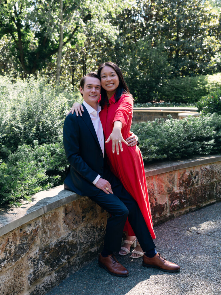 I spotted them walking hand-in-hand down the steps. Isabel looked radiant in a bright red dress. She may have noticed me, but probably assumed I was just photographing the garden. Jake led her into the middle of the Sunken Garden, turned to her, and dropped to one knee.