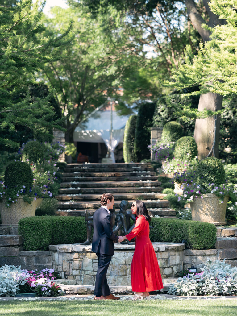 When you’re proposing in May at the Dallas Arboretum (especially on a Sunday), privacy and timing are everything. Jake went back and forth on whether or not to reserve the space—and I encouraged him to go for it. Renting out the Sunken Garden meant the Arboretum would provide rope barricades and staff to manage the area, keeping it clear of the weekend crowds.