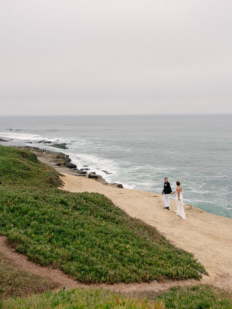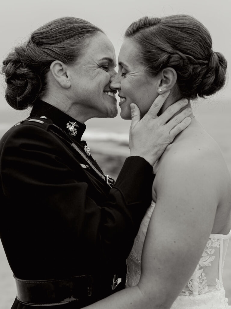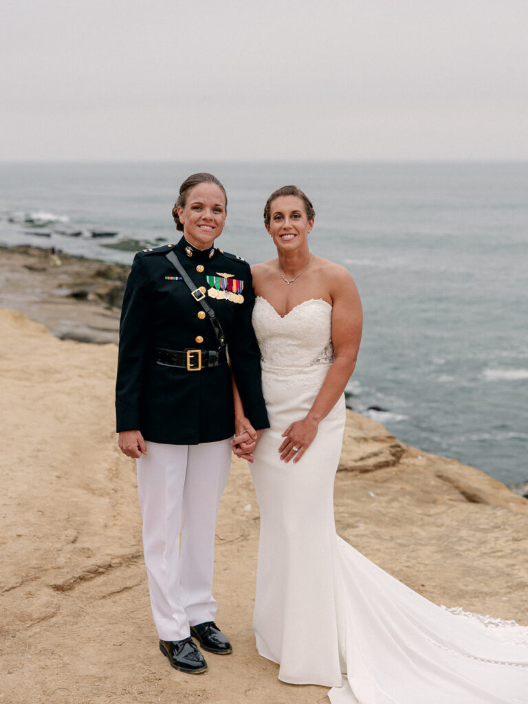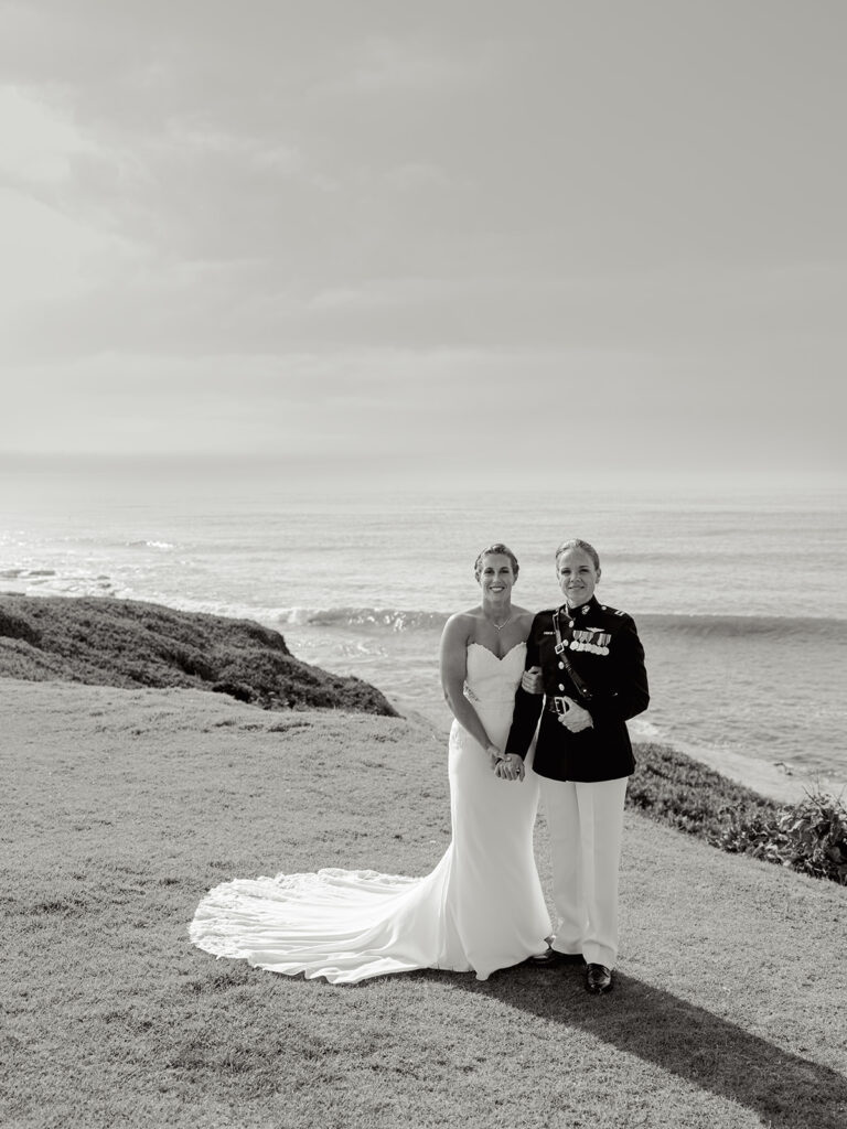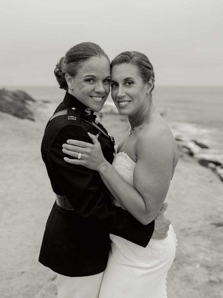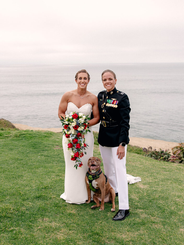 Mehgan met her future wife and perfect match, Taylor, at Camp LeJeune in North Carolina. Fast forward a few years: stationed in San Diego, building a life together (with their adorable pup Kota Bear!), and planning a wedding that would take place in one of the most stunning coastal locations in the U.S.—The Wedding Bowl in La Jolla, California. When Mehgan reached out to ask if I’d fly out to photograph their wedding day, I immediately said yes. I love destination weddings, and this La Jolla California wedding was truly unforgettable.