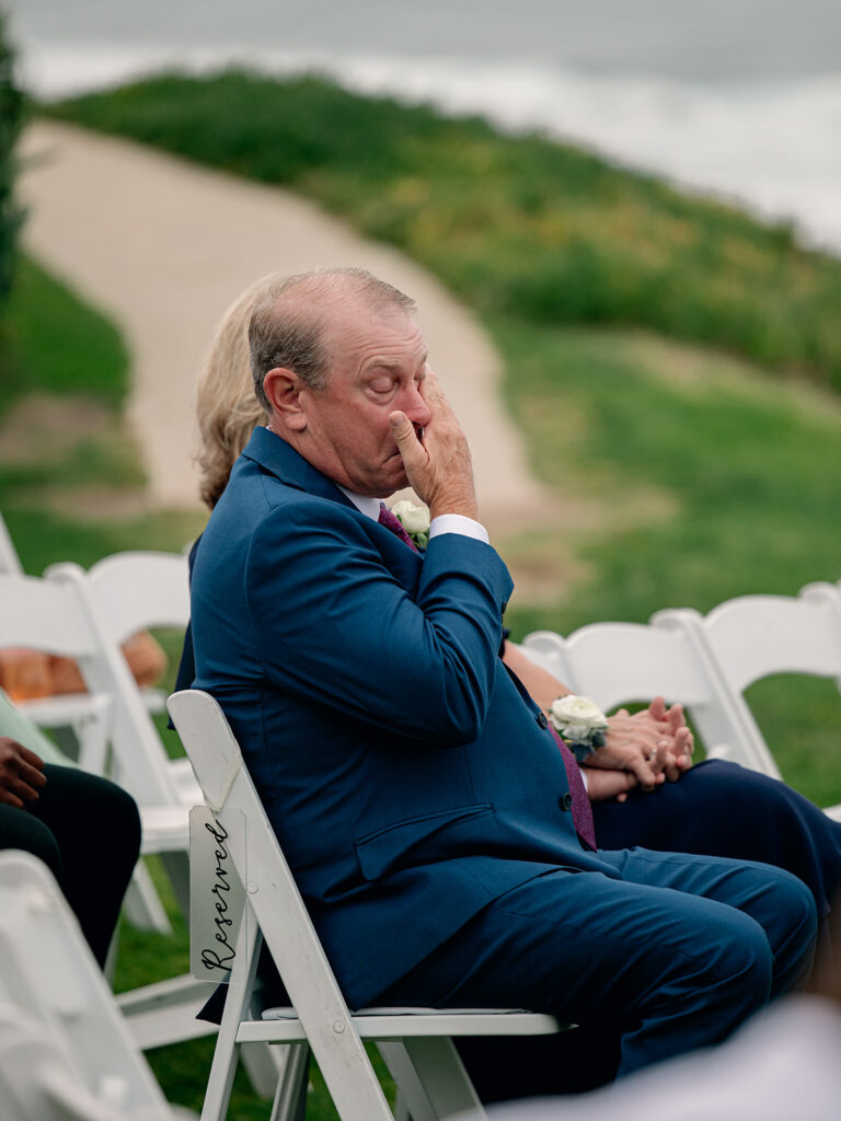 After the ceremony, we headed to the cliffs for portraits while Dustin photographed cocktail hour back at the Cuvier Club. The ocean breeze, the golden hour light, and Taylor’s dad lovingly helping carry Taylor’s bouquet and train—it was such a sweet, supportive moment that said everything about the love surrounding this couple.