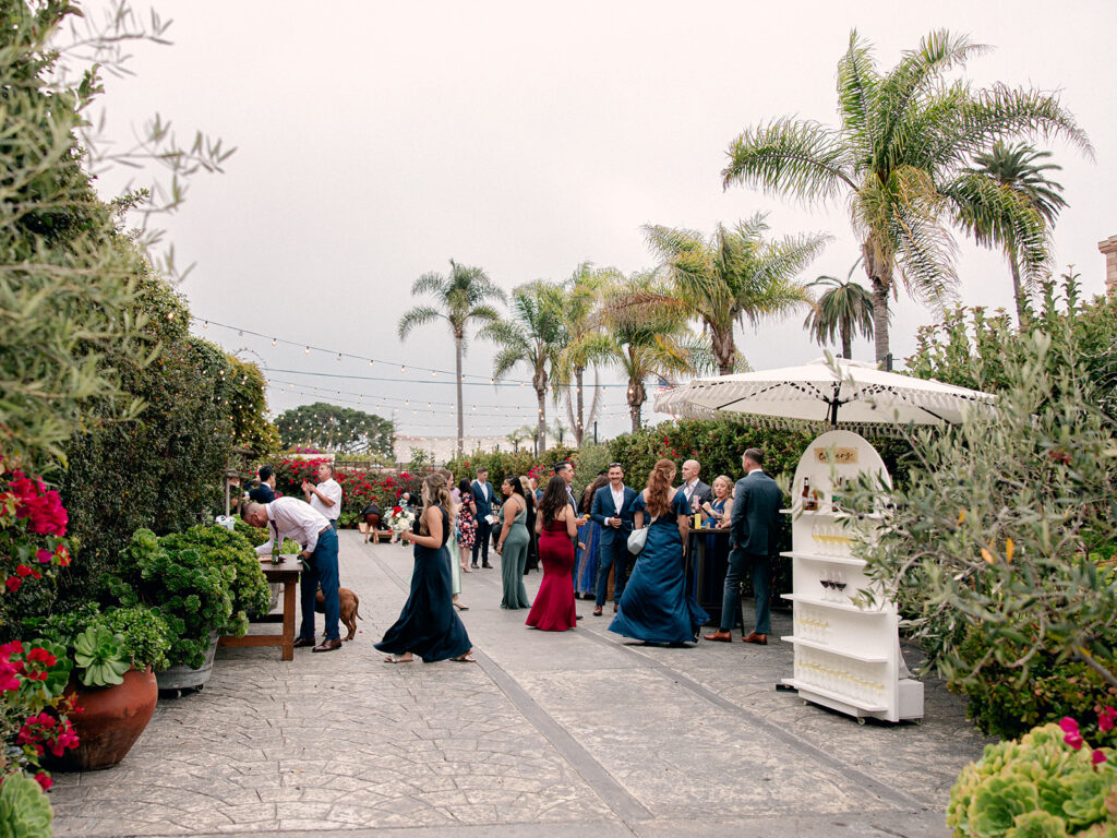 Mehgan changed into a crisp, chic pantsuit and the two joined in on cocktail hour at the Cuvier Club’s outdoor terrace—a space lit by string lights and filled with lawn games and cocktails. The energy was vibrant but deeply personal, and every detail was thoughtfully chosen.