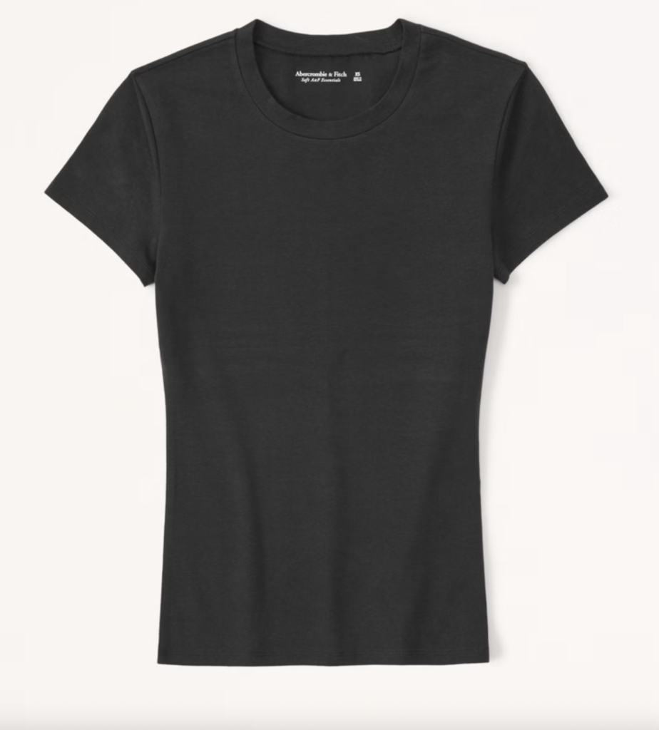 - Abercrombie Essential Tuck Baby Tee – A polished basic that tucks perfectly into trousers.