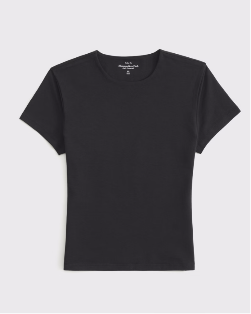 - Abercrombie Essential Tuck Baby Tee – A polished basic that tucks perfectly into trousers.