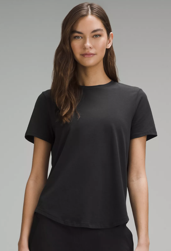 - Lululemon Love Curved-Hem Crewneck T-Shirt – Soft and flattering with a curved hem that layers well.