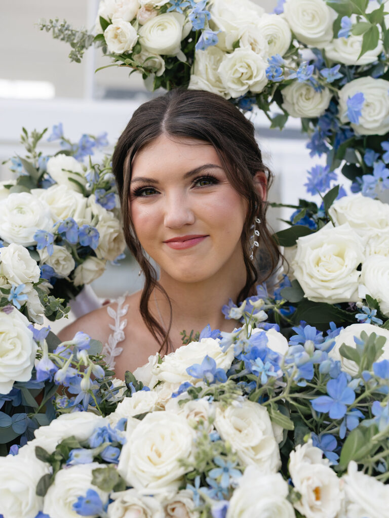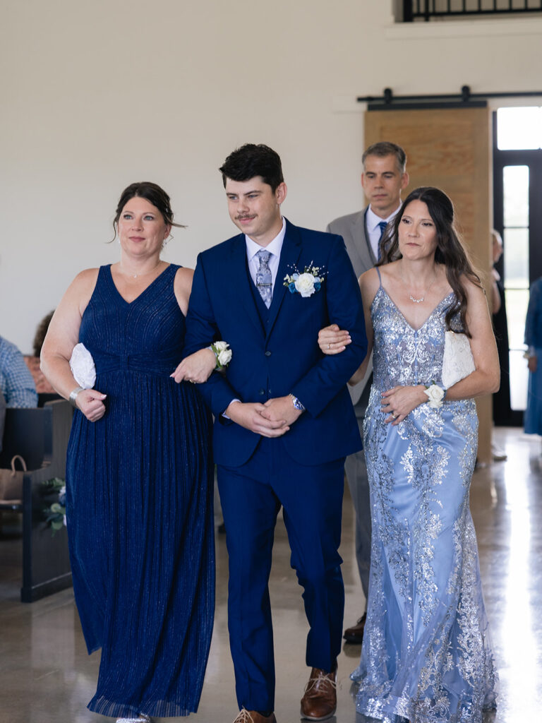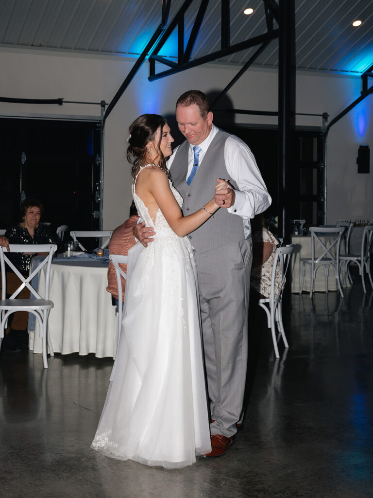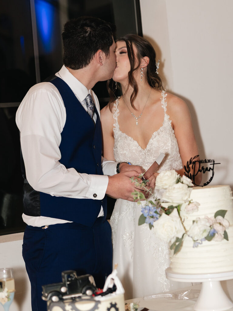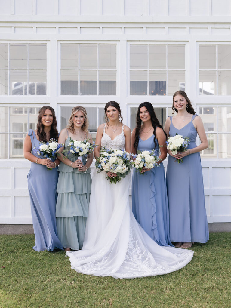 Their wedding design perfectly matched the venue’s modern-farmhouse style—refined yet cozy. The dusty blue, sage green, and ivory was so romantic. It was brought to life through florals, linens, and subtle décor. Every detail, from Alyssa’s look by Tease to Please Hair & Makeup to their cake by Sweets by Zeek, tied together seamlessly.