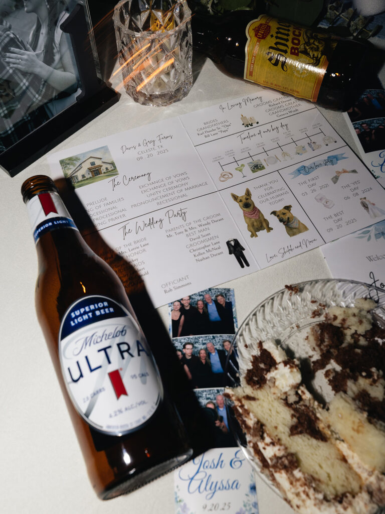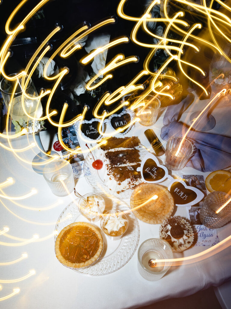 The evening began with the bridal party entrance, followed by the couple’s grand entrance and first dance. The toasts were heartfelt, full of stories and laughter. Later in the night, Alyssa surprised her mom with a special bouquet dedication and dance.