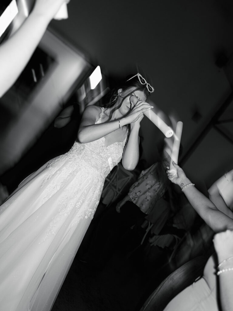 One of the most fun traditions they included was the “photo dash”—Alyssa and Josh sat on the dance floor as each table took turns rushing up for a quick photo before the song ended. As the reception unfolded the dance floor was full from the first song thanks to Corona Entertainment. The energy was electric, and it made for some of the most joy-filled images of the night.