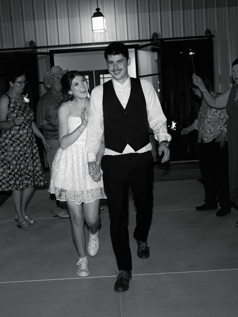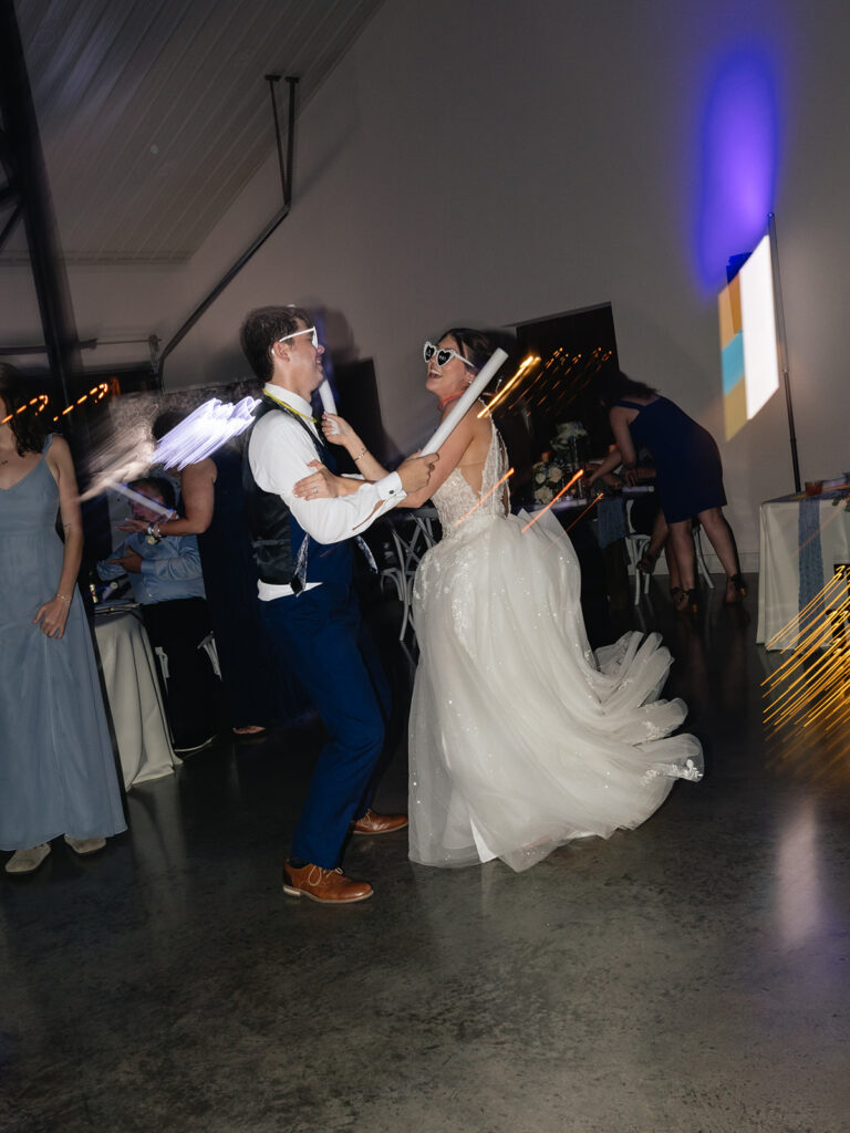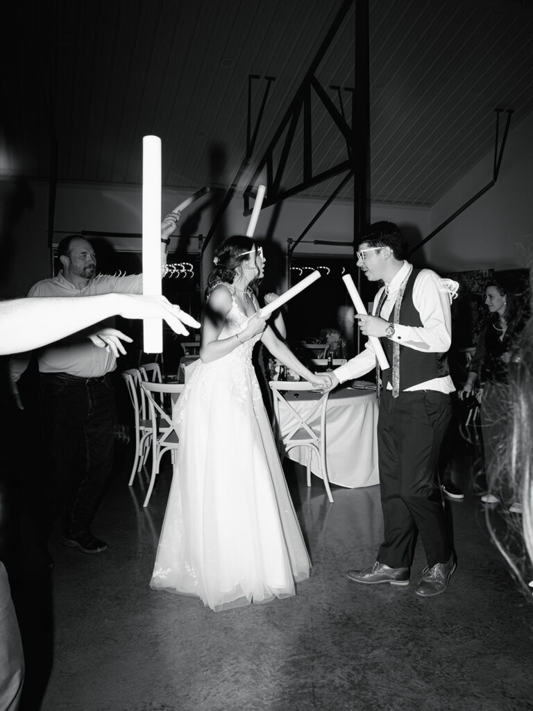 The celebration wrapped up with a sparkler exit surrounded by their guests and the glow of the sparklers.