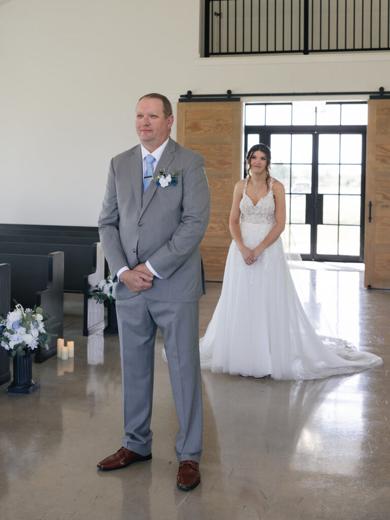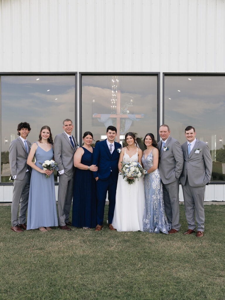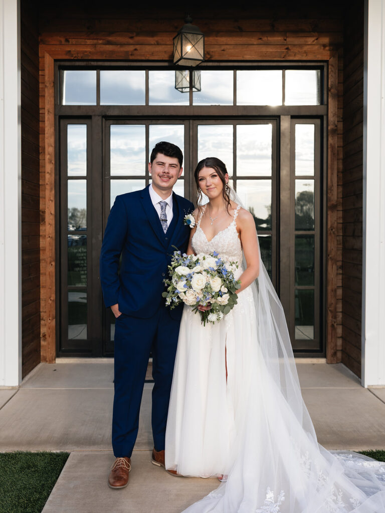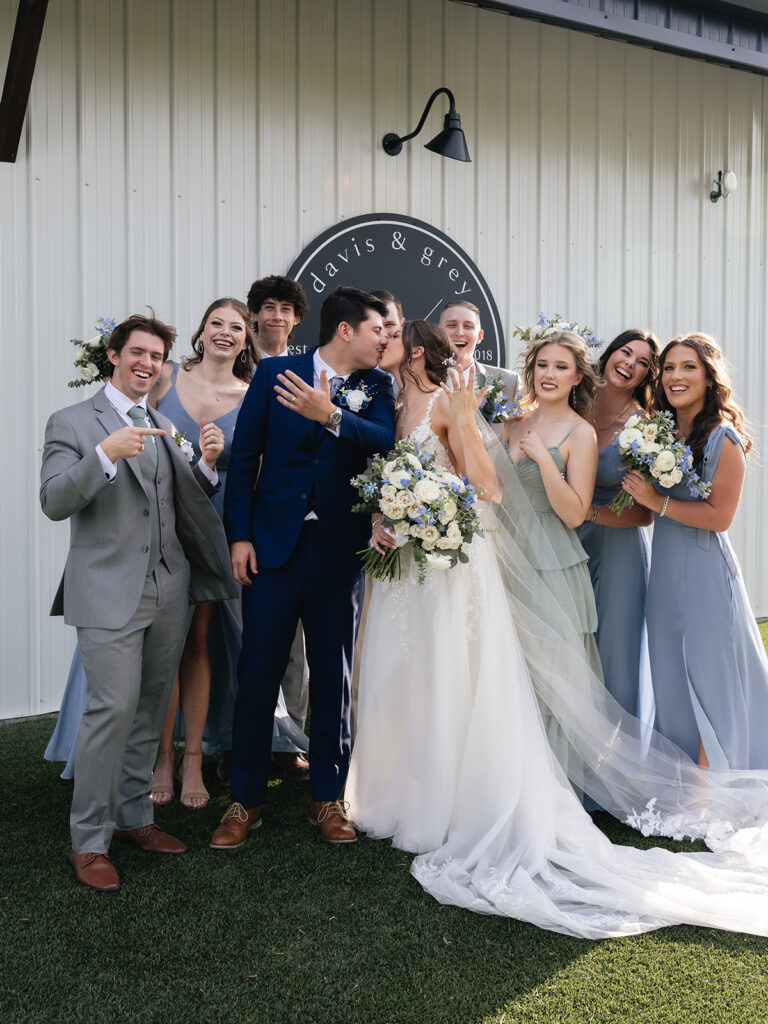 Alyssa and Josh’s wedding day at Davis & Grey Farms was the perfect reflection of who they are—warm, intentional, and joy-filled. The venue’s signature black-and-white modern farmhouse design provided the perfect backdrop for their soft color palette of dusty blue, sage green, and ivory. Every detail felt timeless and fresh, beautifully complementing the clean lines and bright natural light of this stunning Celeste, Texas venue.