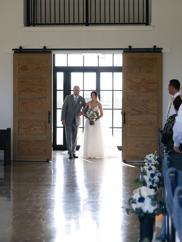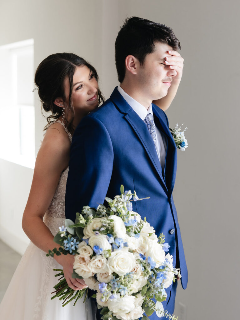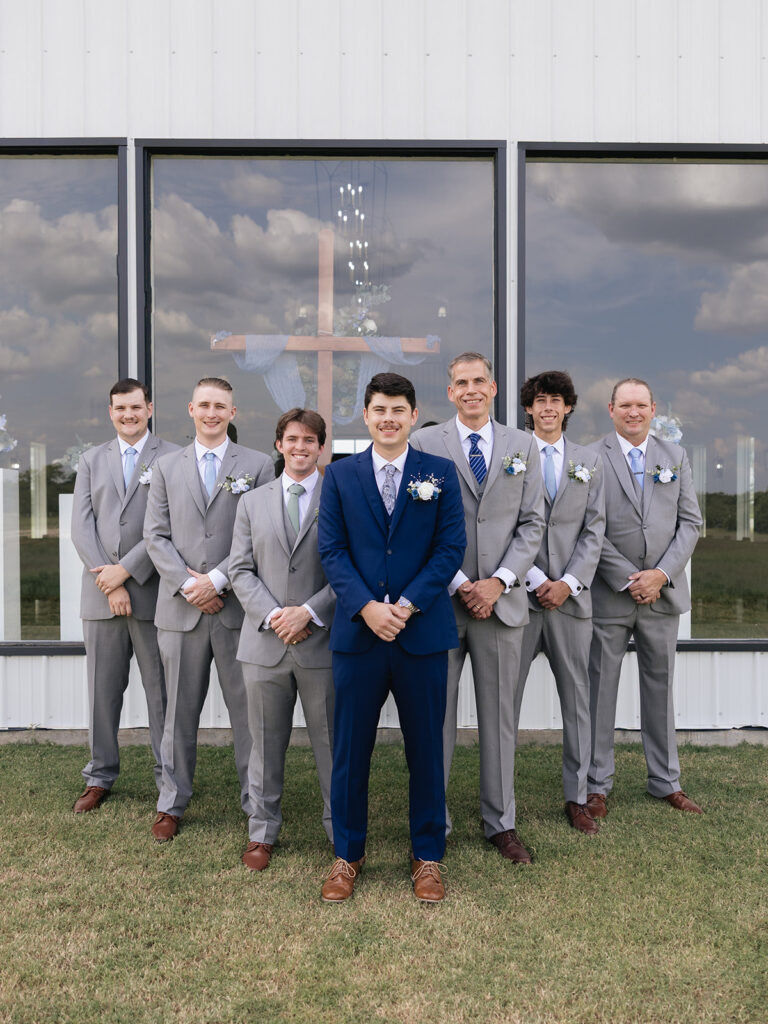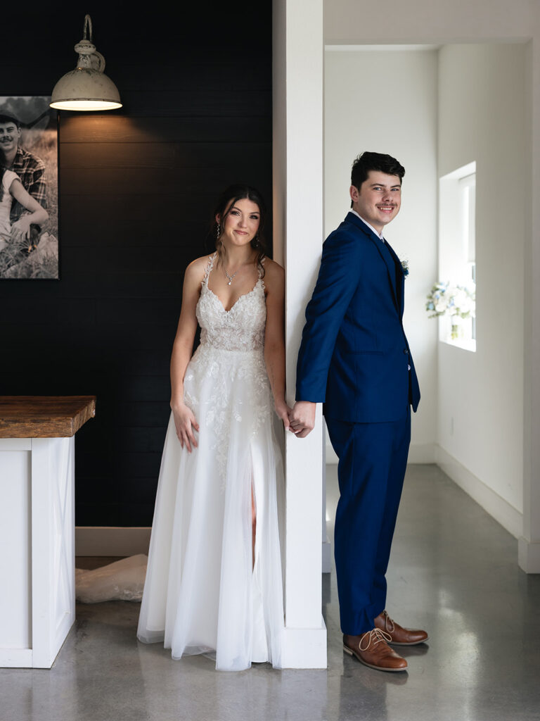 Alyssa and Josh’s wedding day at Davis & Grey Farms was the perfect reflection of who they are—warm, intentional, and joy-filled. The venue’s signature black-and-white modern farmhouse design provided the perfect backdrop for their soft color palette of dusty blue, sage green, and ivory. Every detail felt timeless and fresh, beautifully complementing the clean lines and bright natural light of this stunning Celeste, Texas venue.