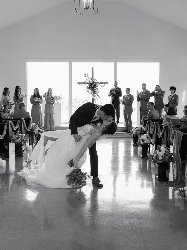Their joy was contagious as they exited down the aisle—Alyssa leaning into a perfect dip at the end as guests cheered them on.
