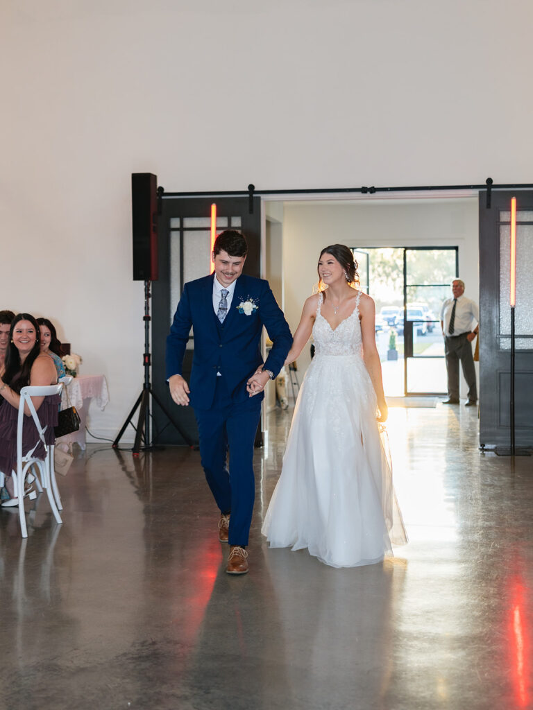 Guests were welcomed into the reception space where the modern farmhouse design continued: clean lines, warm wood tones, and a glow from candlelight. Alyssa and Josh did something a little unique and greeted guests personally as they entered—a small gesture that spoke volumes about how much they value their friends and family.